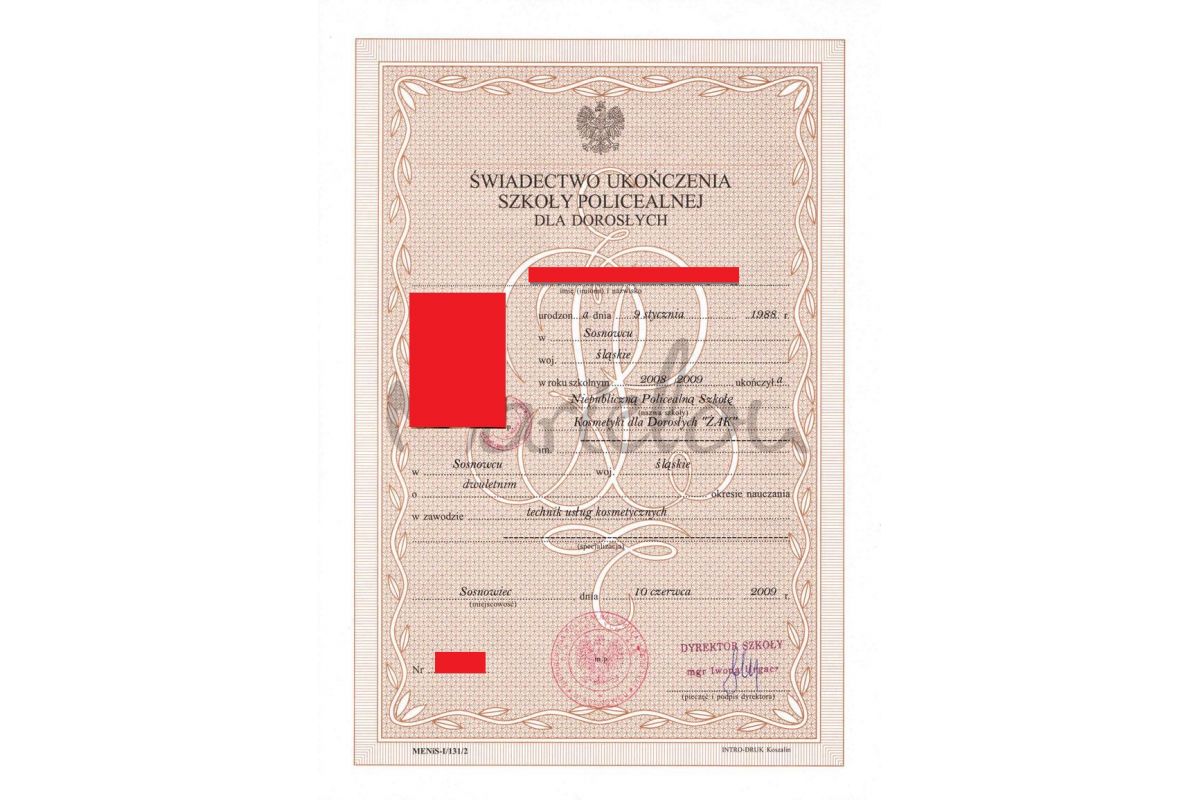 Świadectwa szkolne z wpisem – świadectwo ukończenia szkoły podstawowej, liceum, technikum oraz szkoły zawodowej.